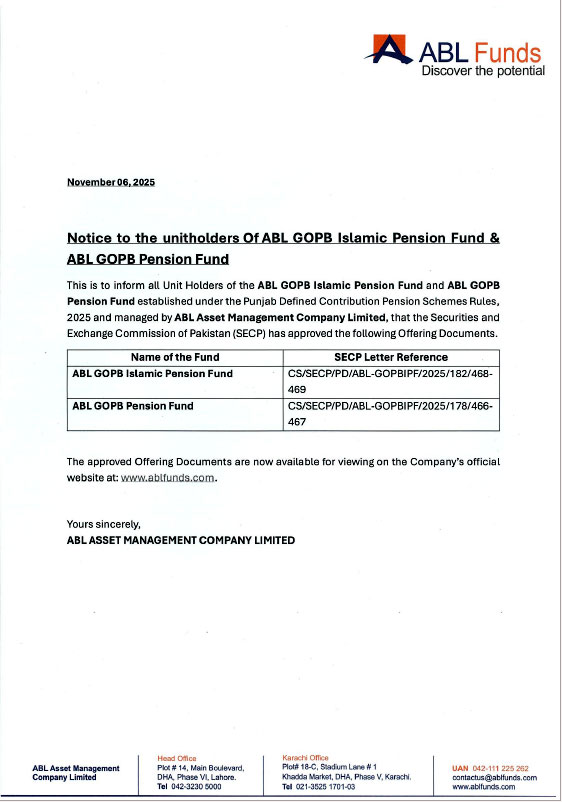 Notice to Unit Holders of ABL GOPB Islamic Pension Fund & ABL GOPB Pension Fund
